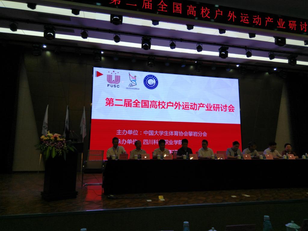 2017年5月27日,中心负责人宋海宾副教授由中国大学生体育协会攀岩分会主办、四川科技职业学院承办的第二届全国高校户外运动产业研讨会。来自全国211、985高校以及兄弟院校的体育界专家、体育学院院长和体育部主任、户外运动教师、户外运动爱好者等全国31所高校的户外运动专家、学者企业代表参加了开幕式。